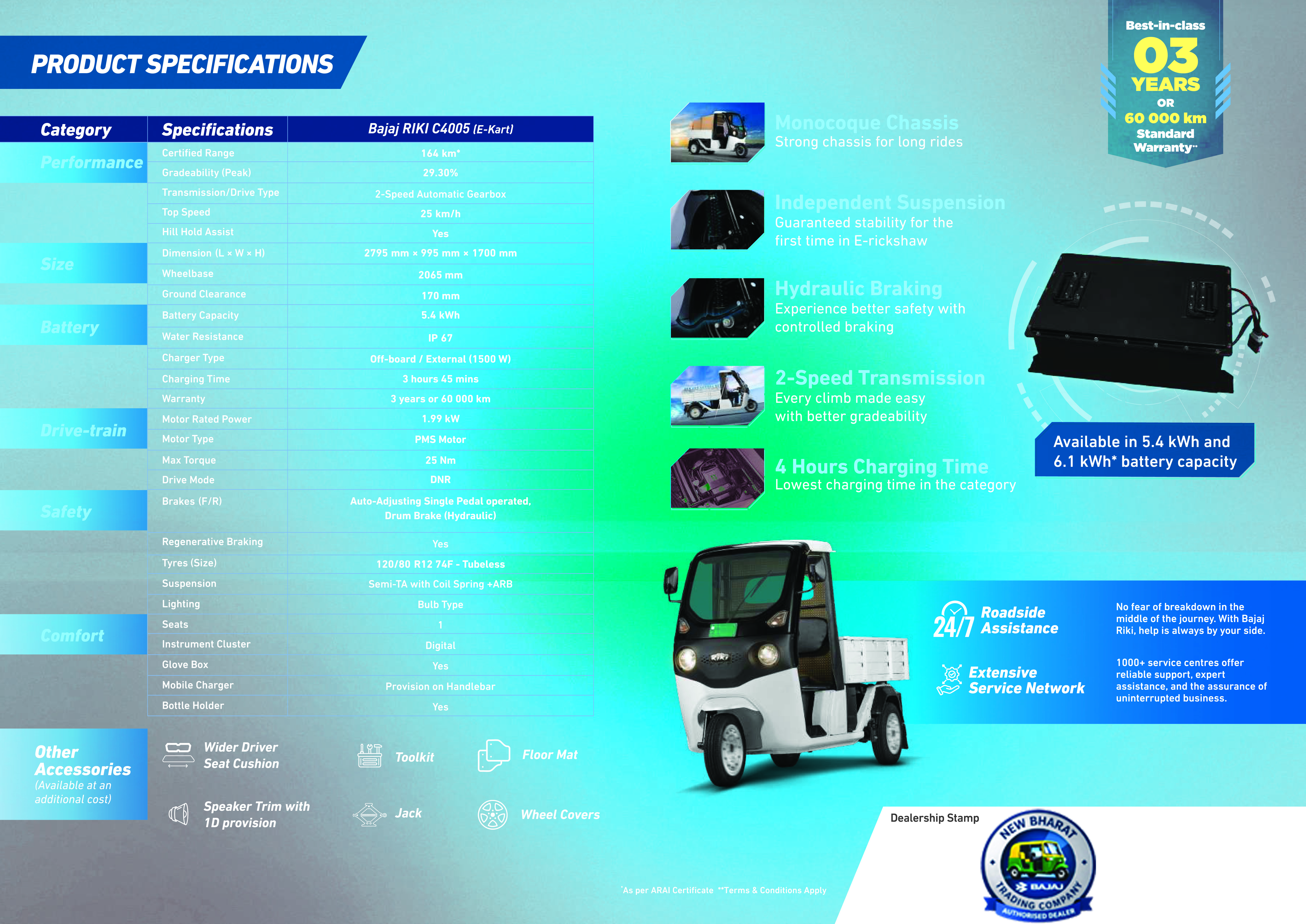 With Riki, every ride is a partnership of trust. The C4005 is designed to stay steady, strong, and dependable through every duty of the day. Powered by Bajaj’s legacy of reliability, it’s built to deliver Bharose ki Bhaagidaari every single time.